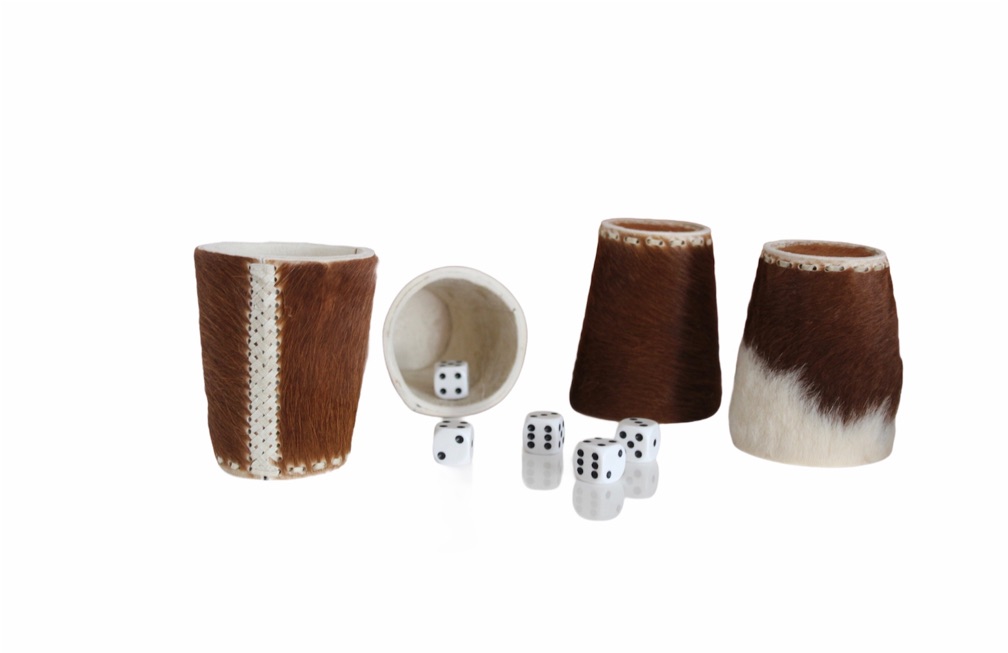 Set 4 cachos 100% cuero Confeccionado a mano Contiene 20 dados blancos Bolsa de genero para guardar Color cuero café
